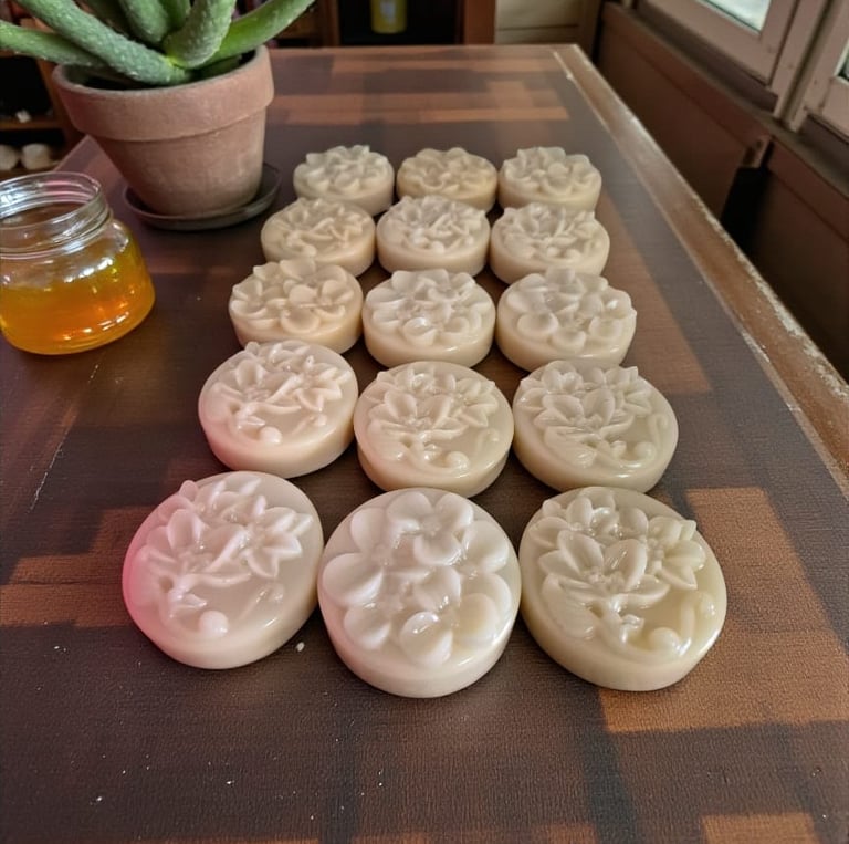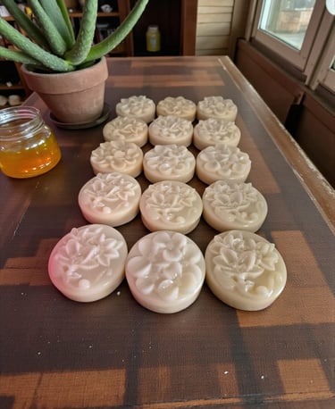 Cada jabón es hecho a mano con glicerina vegetal, miel pura y sábila fresca, enriquecido con plantas y aceites esenciales que aportan hidratación, equilibrio y un cuidado profundo.