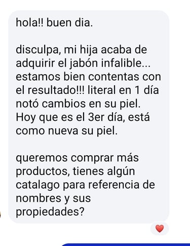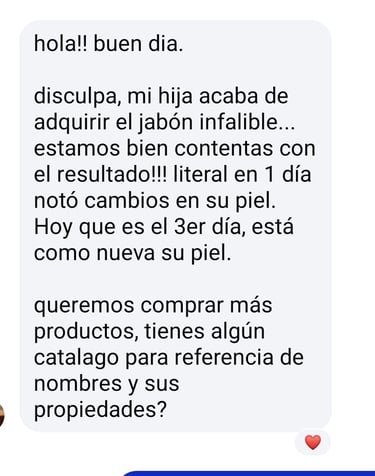 ”Mi hija acaba de adquirir el jabón infalible..... Estamos contentas con el resultado.”