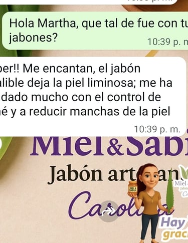 ”El jabón infalible deja la piel luminosa; me ha ayudado mucho con el control de acné y a reducir manchar en la piel.”
